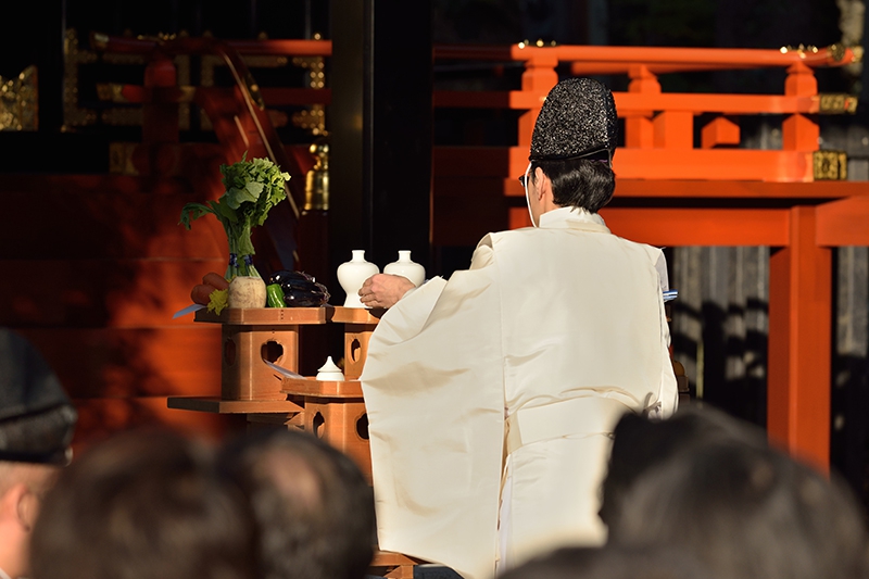 4日の遷座祭では、夜の闇の中、神職全員で神様を常磐神社にお迎えいたしました。