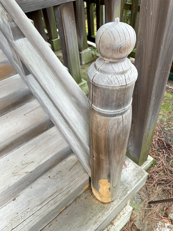 境内中央の広場に面し、長年の風雨に耐えてきた天之御柱宮も、昨今は足元からシロアリの被害が目立ち、損傷著しくなってまいりました。